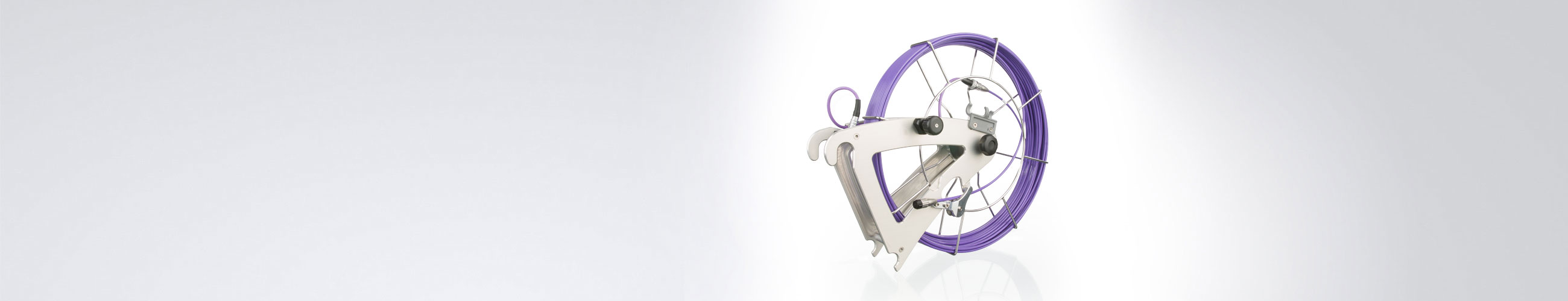 Die Seitenplatten und damit die Aufhängung der Haspel sind aus strapazierfähigem ABS-Kunststoff gefertigt. Ein Köcher schützt die angeschlossene Schiebekamera während des Transports und der Lagerung.