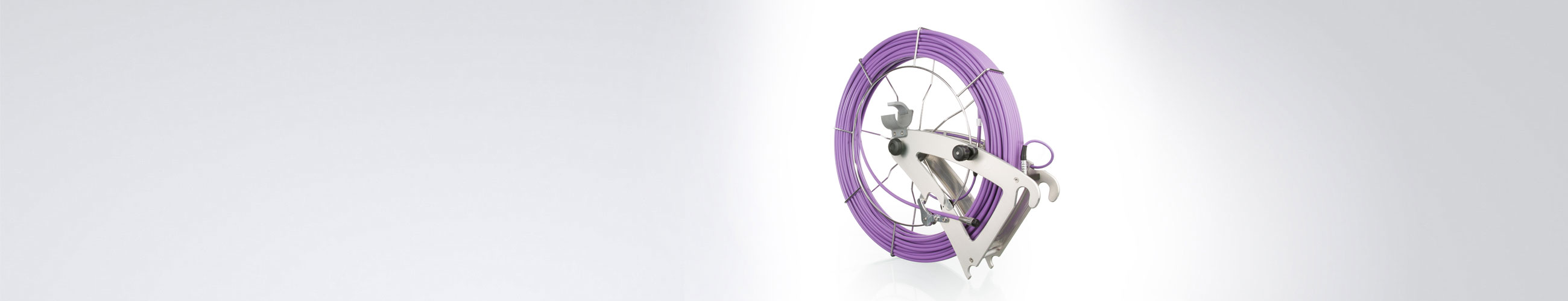 Die Seitenplatten und damit die Aufhängung der Haspel sind aus strapazierfähigem ABS-Kunststoff gefertigt. Ein Köcher schützt die angeschlossene Schiebekamera während des Transports und der Lagerung.