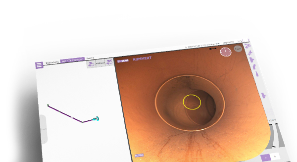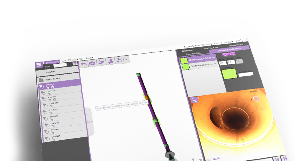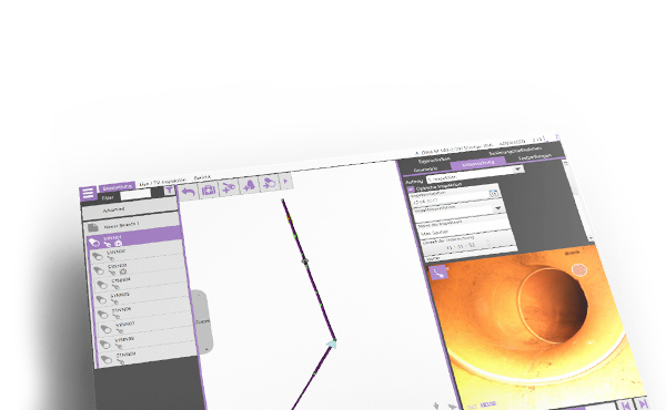 Der Verlauf der Leitung wird bei der Inspektion durch Eingaben oder Sensoren erfasst und in 3D neben dem Live-Bild angezeigt.