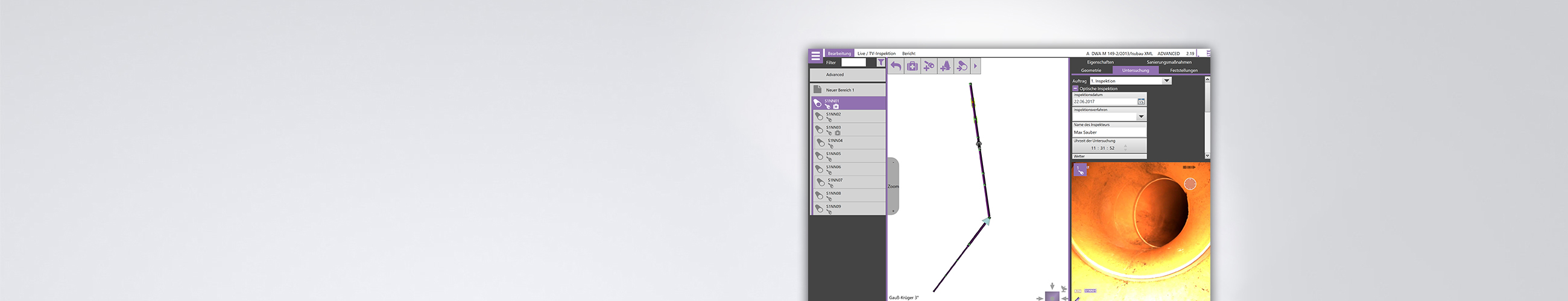 Schächte können bereits im Vorfeld angelegt und bearbeitet werden. Durch die Vergabe von Bezeichnungen wird wichtige Vorarbeit für die korrekte Benennung der zu inspizierenden Leitungen und Haltungen geleistet.