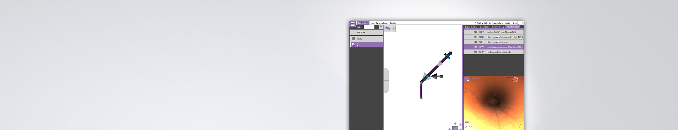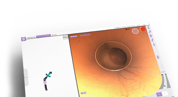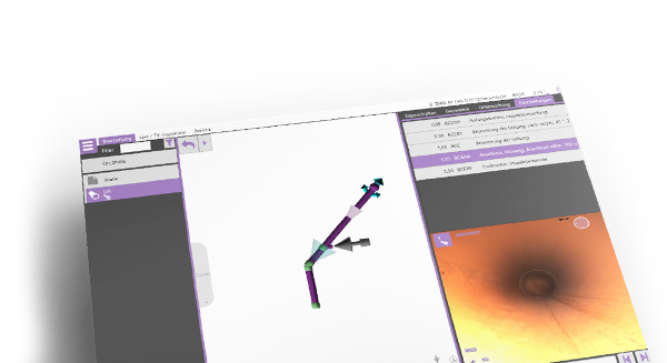 Der Verlauf der Leitung wird bei der Inspektion durch Eingaben oder Sensoren erfasst und in 3D neben dem Live-Bild angezeigt.